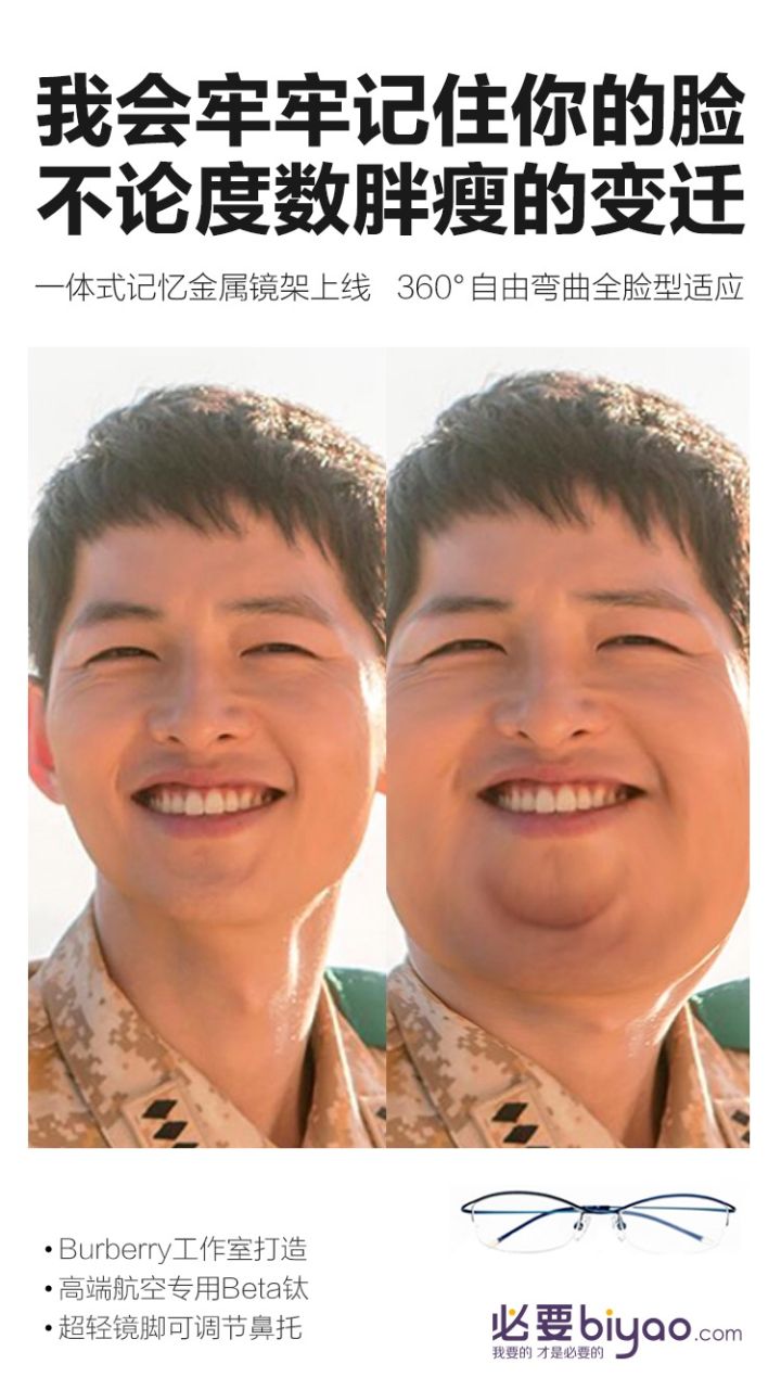 产品:一体式记忆金属镜架上线文案:我会牢牢记住你的脸,不论度数胖瘦的变迁