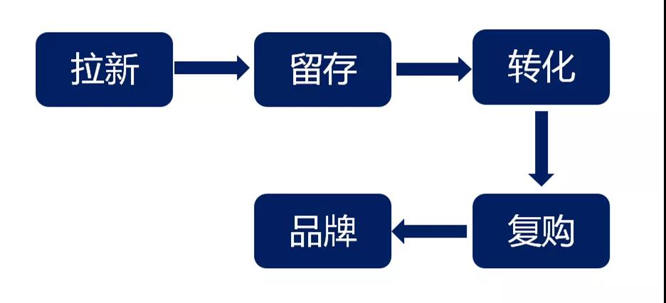 用户路径大致可以分为:拉新、留存、转化、复购、品牌推广。