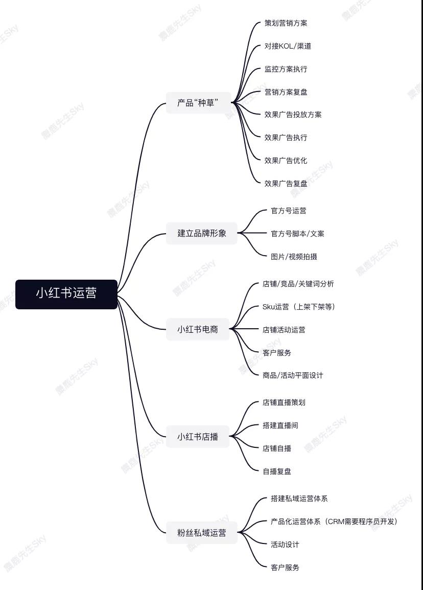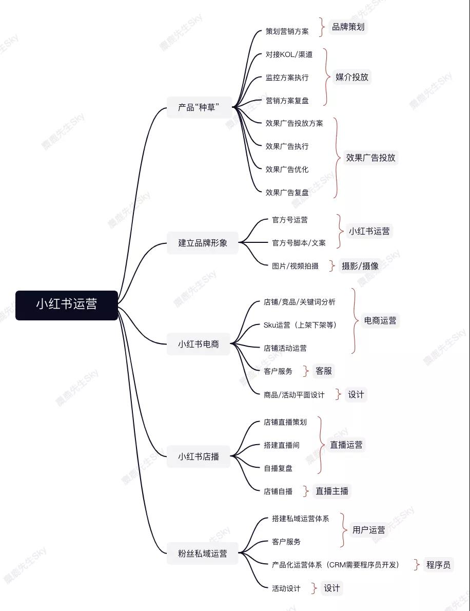 但我们也能看到,上面的机构图里说的都是在小红书里需要干的几件事情,不是具体需要做什么。