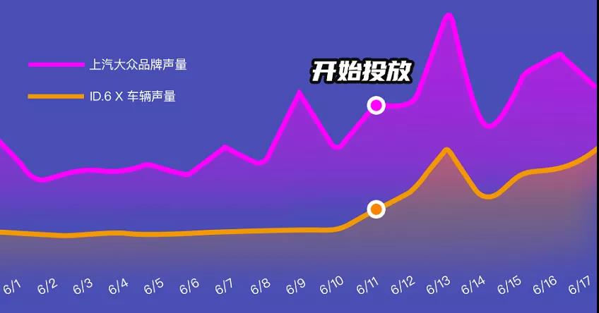 如何吸引新消费时代的年轻人,更是汽车品牌们十分重视的问题。上汽大众ID.6 X上市预热过程中,借势微博特有的舆论生态,以高管和官微的互动喊话为锚点,吸引年轻人"看热闹""共吐槽",再通过创意内容将用户目光吸引到汽车身上,完成了新车上市前声量与内容资产的积累。
