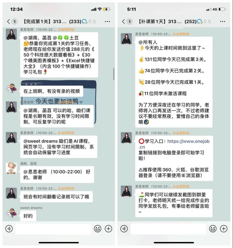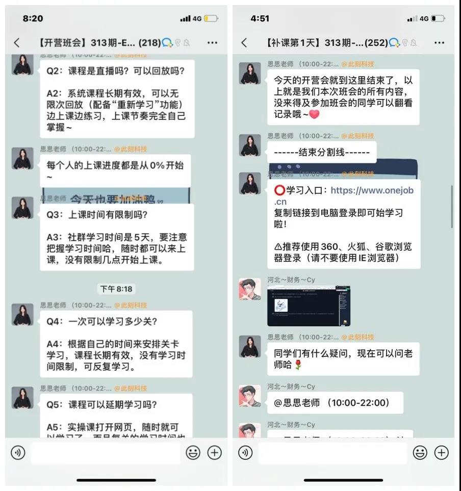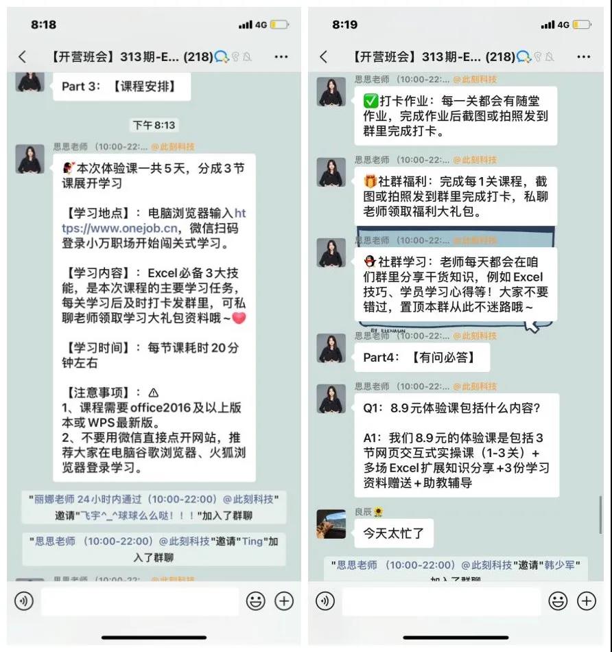 2. 引导用户进入专属学习答疑群参加开营仪式,增加用户的归属感。