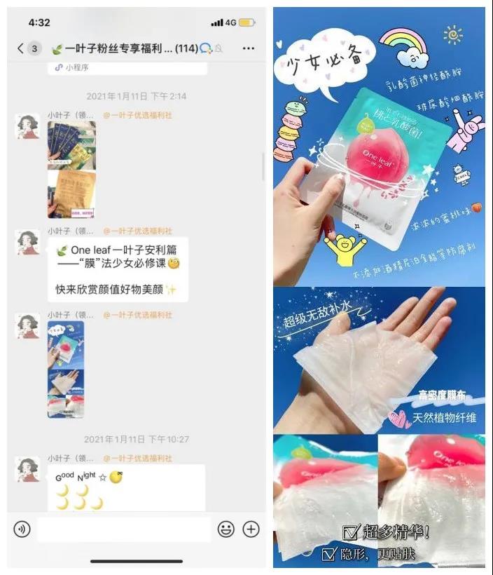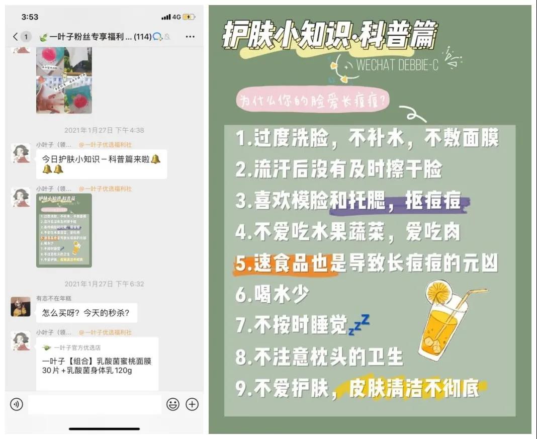 通过图片分享的形式在群内进行护肤知识的分享,可以提升用户对社群的关注度,促进社群留存。