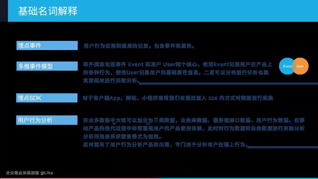 这个是用户的行为数据,它常见的应用的场景这一块话,相信大家在公司里面最常见的应该是第一个跟第二个就是我用这个数据去衡量上线的好坏,这个是他的应用场景会有这一些。