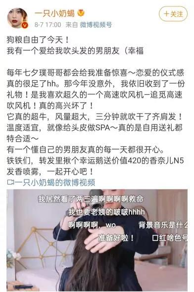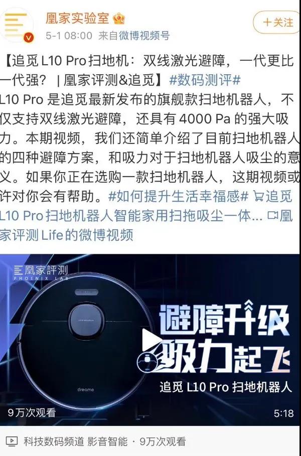 以吹风机为例,在追觅官微图文以及视频呈现的形式中,就做好了产品与场景的结合推广,如在"一只小奶蝎"的微博博文,就将吹风机的"高颜值"、"三分钟速干"、"吹完顺滑不毛躁"这几个关键点,在视频里表达的生动详尽。将产品特性与相应的使用场景结合,可以让用户直观的认识到"这个产品的优势是什么?"、"我可以用在什么地方?"