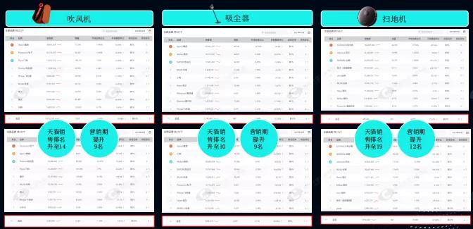 从变现转化结果上来看,微博营销与种草场域相结合,帮助追觅产品在销量上得到快速提升。追觅主推的三大产品吹风机、吸尘器、扫地机,在4月——6月两个月的时间里销量都得到显著提升,吹风机的天猫销售排名由之前的23名提升至14名、吸尘器由19名提升至10名、扫地机器人从31名提升至19名,都取得了较为可观的效果。