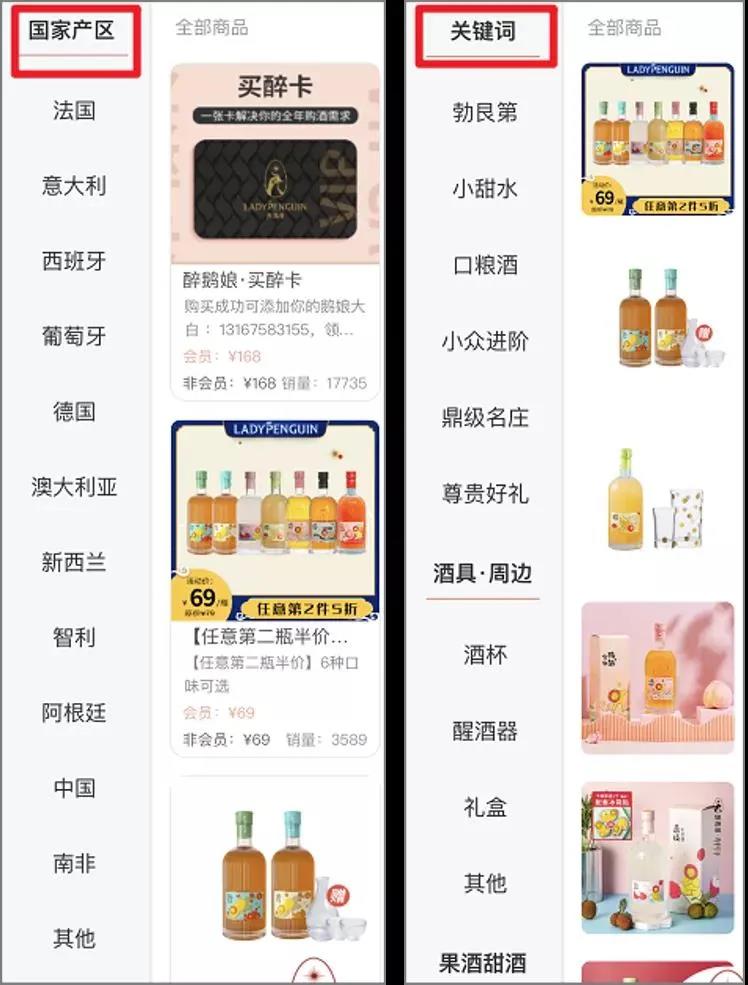 醉鹅娘通过衍生出了更多以年轻人为喜好的酒品牌,将红酒单行线扩充为红酒、休闲酒类双线并行,让年轻人喜欢酒水感知酒水文化。