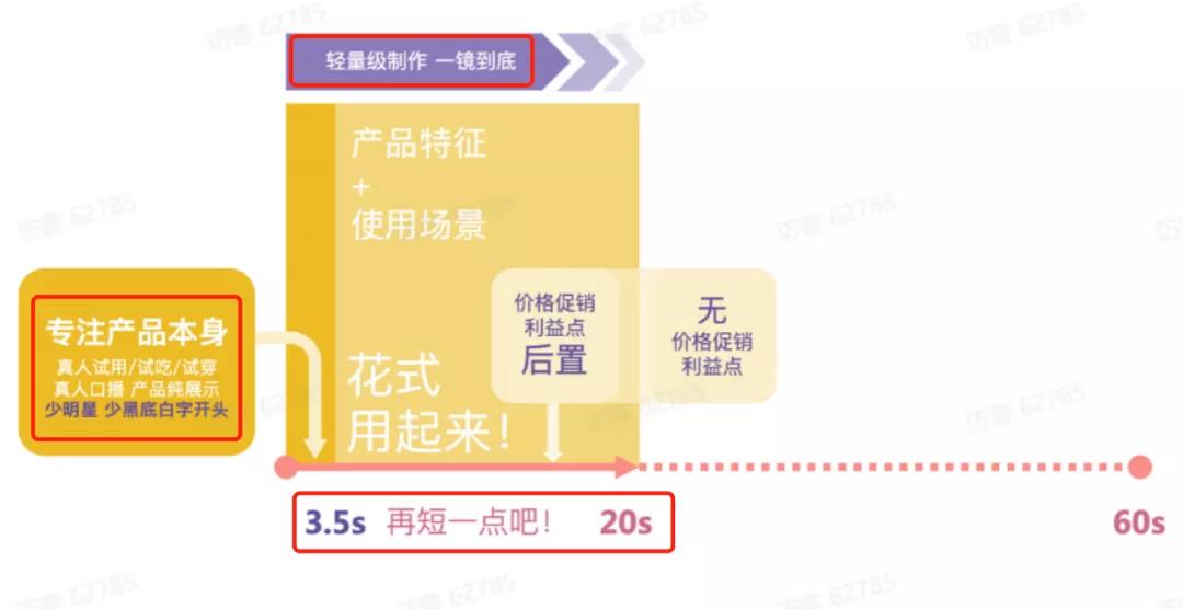 所以绝大多数的直播都不适合直投直播间,而是应该把核心卖点和吸引用户兴趣的产品力的发掘浓缩到20秒以内的短视频中,视频已经吸引用户兴趣,直播间就做展示、客服和成单!