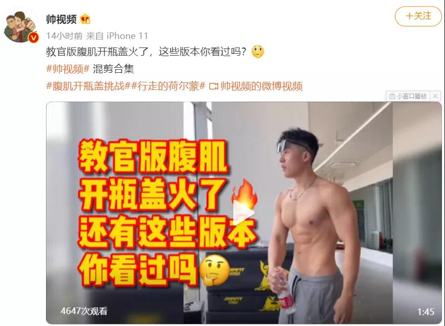 此次微博运动比较受用户关注的挑战赛,#腹肌开瓶盖挑战#、#蜻蜓点水俯卧撑挑战#等获得了不少健身达人、明星大V的参与,提升了整个活动的声量。