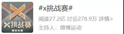 如微博运动发起的X挑战赛,其内容与形式不限的情况下,成功激起了大众的关注,让话题#X挑战赛#产生了27.2亿阅读。