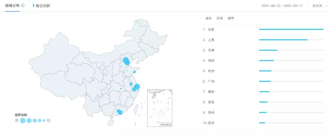 根据百度指数的数据来看,每日优鲜的用户大多数还是在北京与上海,其余14座分布城市还有很多提升的空间