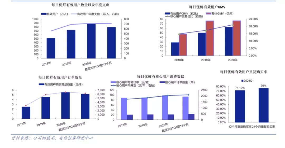 有效用户应占GMV从2018年的28.360亿元增至2019年的49.519亿元、2020年的61.840亿元(9.439亿美元)。每日优鲜前置仓即时零售的平均客单价为94.6元。