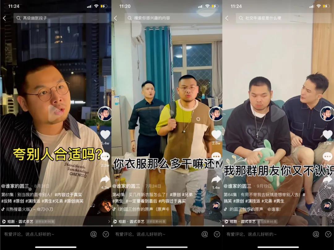各位可以去看看“圆三”这个账号的绝大多数内容,其实都是以男性的身份,来演绎了女性的故事。