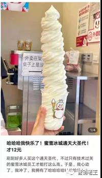 蜜雪冰城产品的形态,天然具备了话题的机会,对于品牌来说,这个产品本身就是一个传播的话题点。