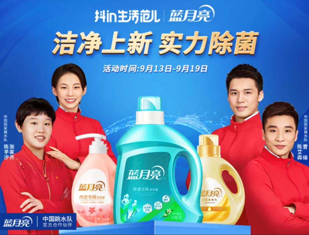 这次"抖in生活范儿"联合蓝月亮,于9月13日-19日在抖音开展以"洁净上新,实力除菌"为主题的除菌新品宣发活动,期间通过广东夫妇等达人直播,并携手中国国家跳水队互动,带动品牌GMV破2200万元,累计销量超过30万件,也给蓝月亮旗舰店抖音号带来200万以上UV,单日最高涨粉破8万。