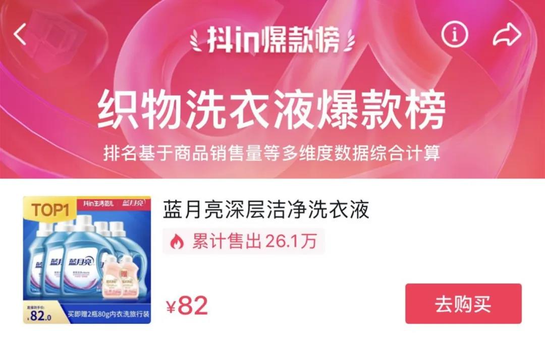 其实,这次"抖in生活范儿"帮助蓝月亮打造的新品营销活动,也是打造行业心智、树立标杆案例的一种尝试。