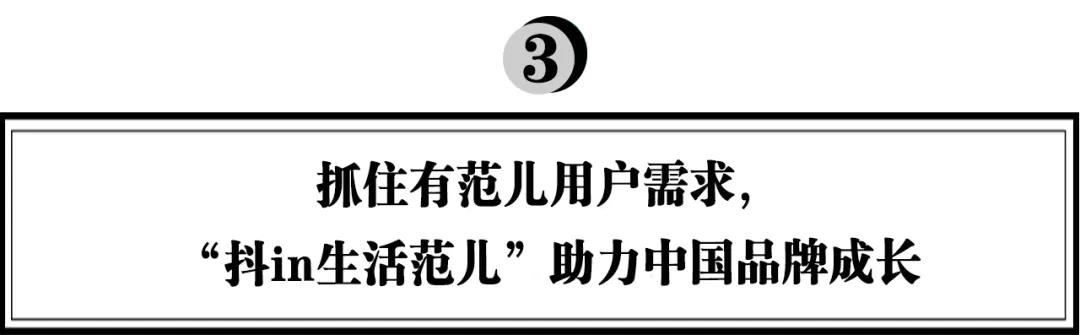 这种对人群需求的精准把控,也让"抖in生活范儿"IP脱颖而出,无形中增强了用户对品牌的认可,产生一种拥有某品牌好像就拥有某种生活范儿的感觉,自然也带动了品牌的销量,并帮助品牌成长为行业标杆。