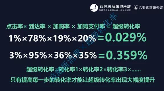 第四个就是加购到支付的转化率,这四个转化率相乘的结果,才是超级转化率。只有提高每一步的转化率,才能让你的超级转化率大幅度提升。