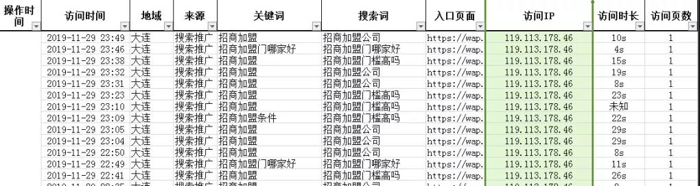大家都知道,ip数据在原则上是需要每天积累,然后三个月作为一个周期更换相关的表格数据,每天实时配合搜索词点击数据,异常情况能做到实时查询与分析。对于长期来说,这个表格积累的数据,对于数据分析的作用可一点都不小。