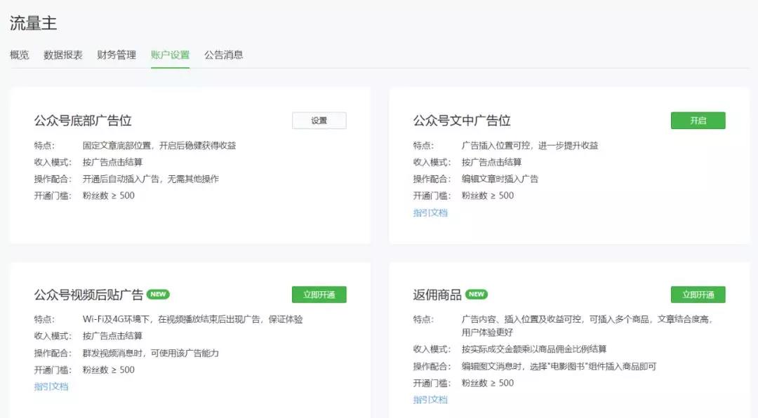 公众号系统自带的一种功能,广告主在公众号中投放广告,公众号粉丝点击该广告,公众号就能获得流量主收入,运营者可以提现。