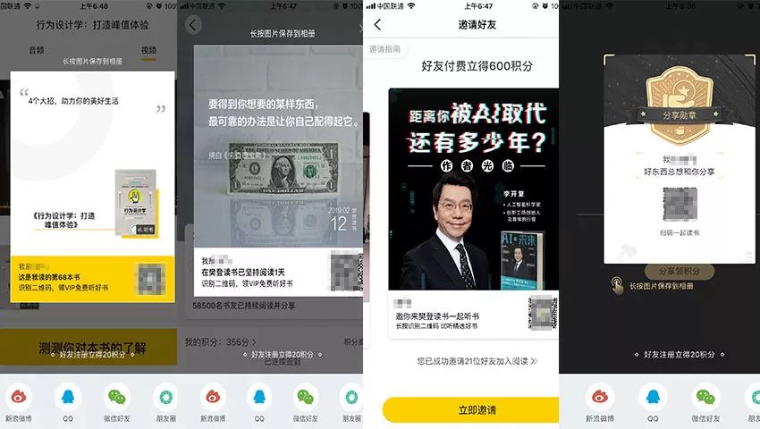 在这一层考验的是内容质量,用户学习后并觉得有收获,然后弹出海报鼓励用户分享,就是顺其自然的事情。