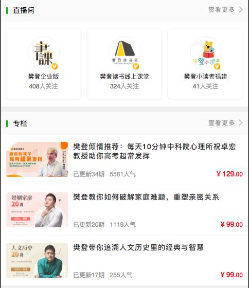到目前为止樊登读书会以读书切入的方式,衍生出“我是讲书人”的节目,以及精品课程,及周边产品等等。