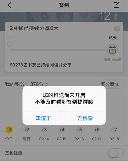 通过签到获取积分,积分分不同等级,同激活策略内容基本相同,有意思的是把推送变成一种订阅的方式,让用户获取签到提醒。