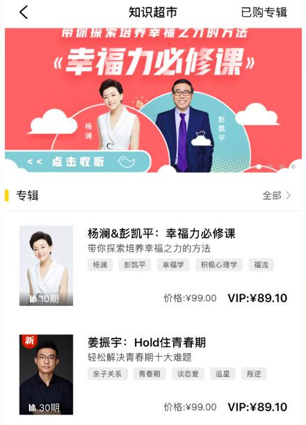 知识超市是一个开放性平台,不管是不是会员都可以购买,只是两者价格不一样,这里入驻的老师都比较有名的老师,因此在促成交易的时候,也会更简单些,加上平台的用户本身就是爱学习的群体。