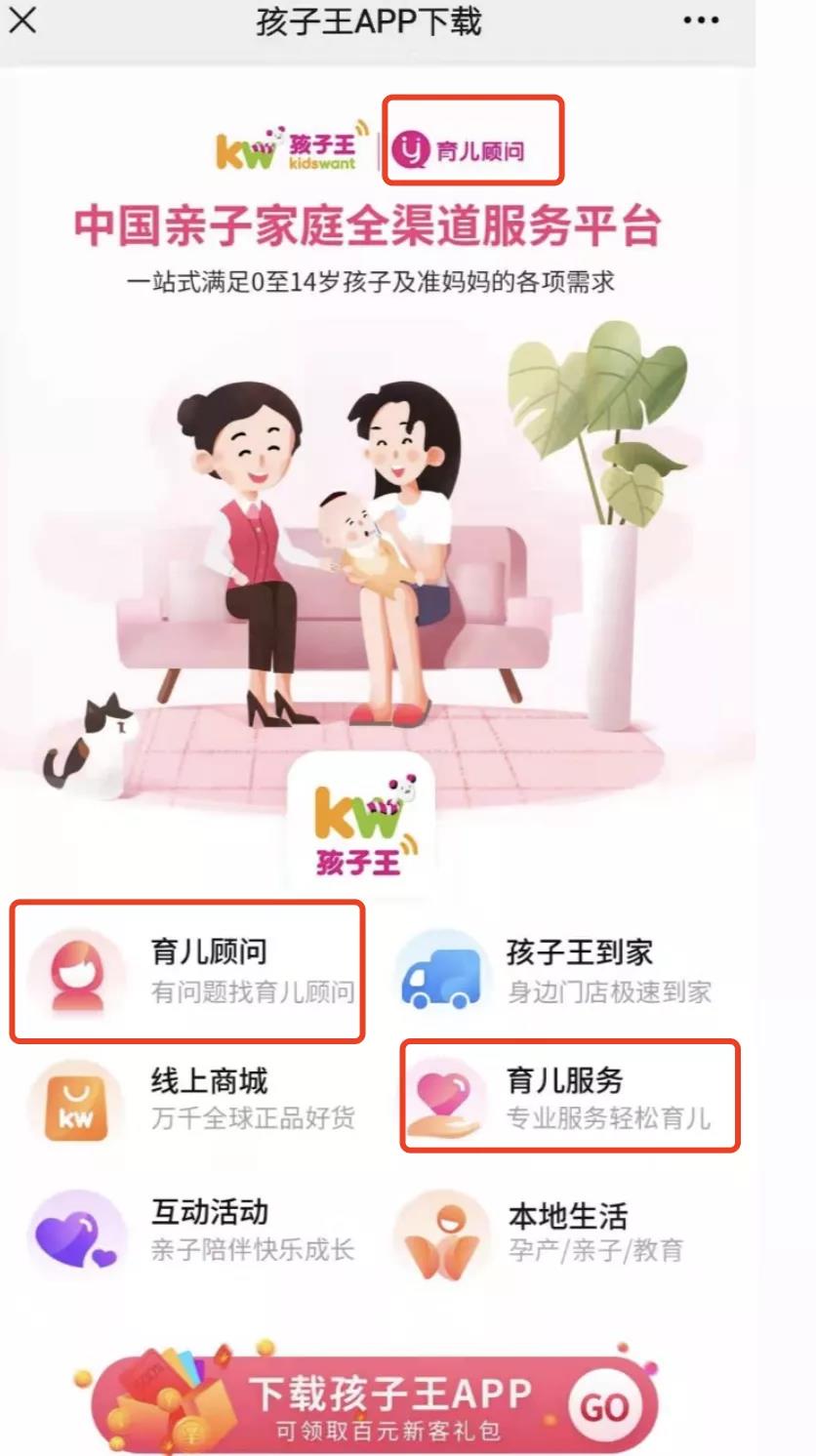 深度服务:孩子王除了导购还会有专门的专业顾问式的育儿师服务,不管线上线下对外也会这样标定。如图。