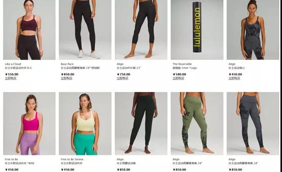 聚焦产品,lululemon素有"瑜伽界的LV"之称,其虽尚处于渠道扩张阶段,但近千元一条瑜伽裤,却以超过耐克瑜伽裤整整一倍的高溢价突围,以高定价收获高利润,并以网红之姿在高净值目标群体中迅速流行。