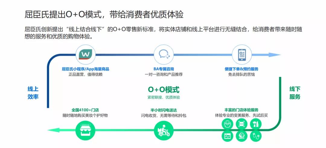 直观理解O+O的最佳方法,不外乎去屈臣氏走一圈:你会发现BA相对少了,而多了的则是带着镜子与试用产品的座位,还提供专门的肤质检测,再待久一点,你会发现BA的专业水平极高,且多数时间实质是在回应咨询。