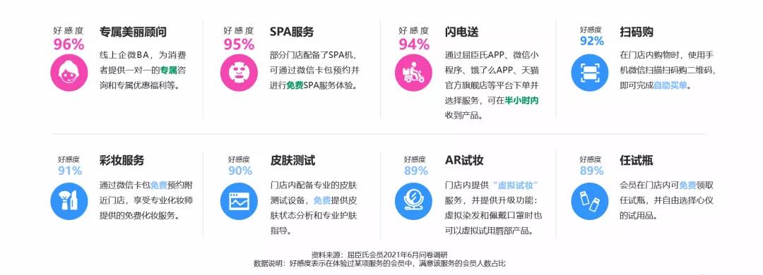 在屈臣氏门店提供的各项服务中,最受欢迎的是什么?无论是专业化妆师提供的免费化妆,还是SPA、肤质测试、AR试妆与闪电送……据调研结果显示,都比不上BA通过企业微信提供的专属咨询,以96%的好感度成为最受消费者欢迎的服务。