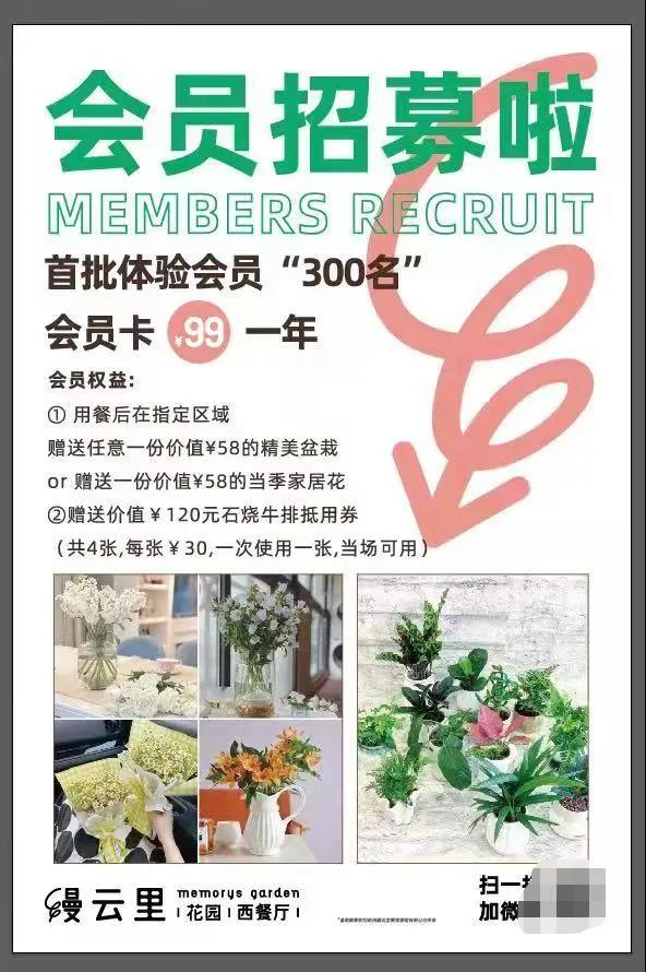 明确告知我们不仅卖鲜花,也是一家牛排西餐厅,这样也并不会显得没有调性,符合人群受众的喜爱。