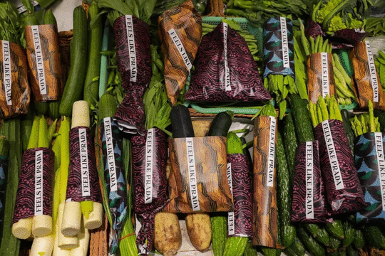 据悉,虽然是奢侈品"开"菜市场,其价格依然是平民价,且在市场中的摊位限量提供Prada品牌秋冬系列的印花包装袋,买即送包装。而Prada与乌中市集联动的这个菜市场也被网友称之为是「上海最潮菜场」。