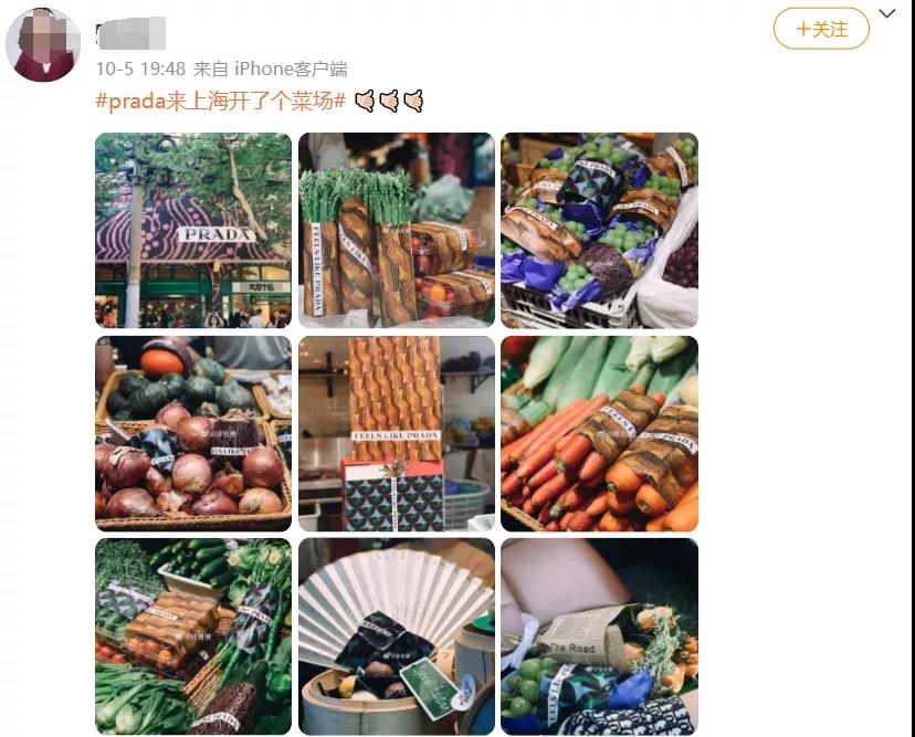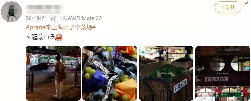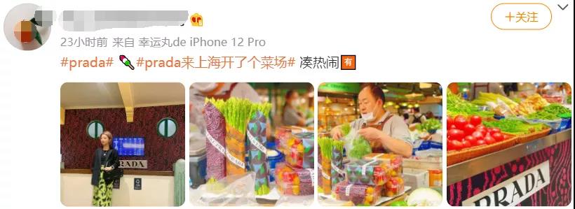 而Prada时尚又充满烟火气息的营销模式,吸引了不少上海市民前往购物消费。而有了Prada的融入,这个菜市场也变成了网红、大V争相打卡的圣地,不少人开始在小红书、微博等平台上晒图,而引发了二次传播,产生长尾效应。