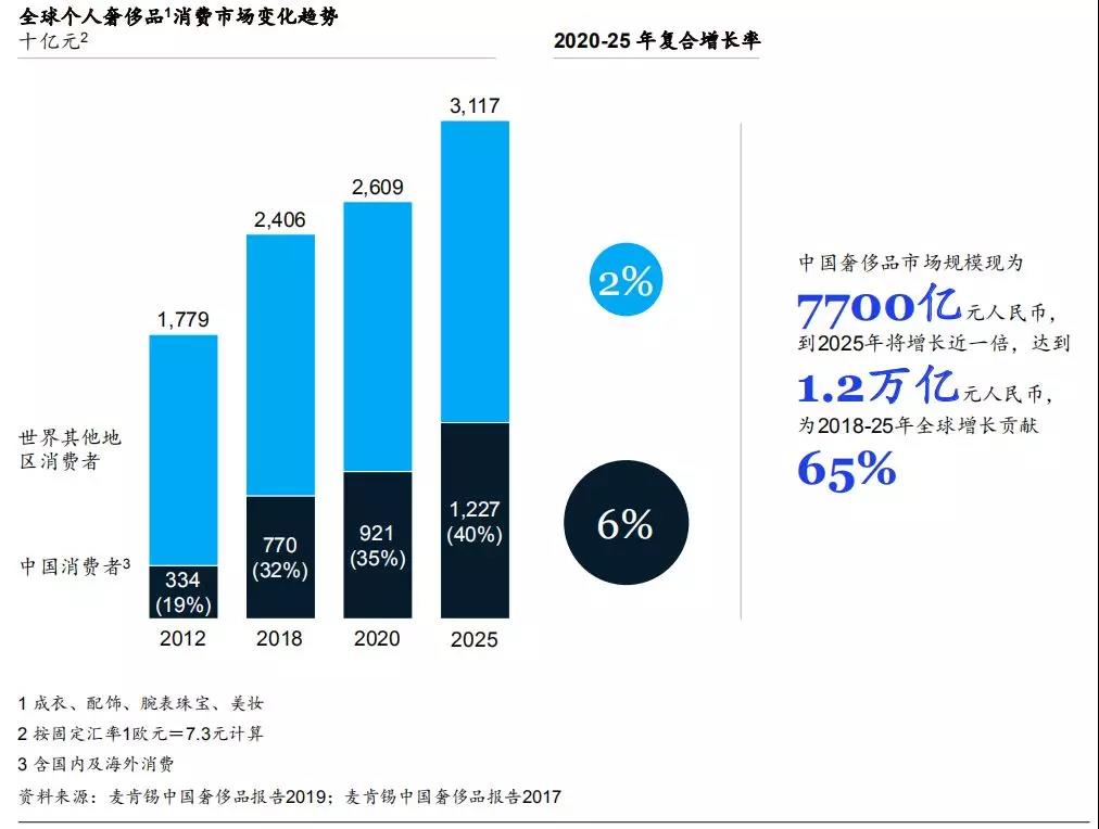 而奢侈品品牌之所不遗余力的在中国市场花式营销,还是因为其市场潜力巨大。据麦肯锡中国奢侈品报告预测,到2025年中国奢侈品市场规律将迎来飞速增长达1.2万亿。