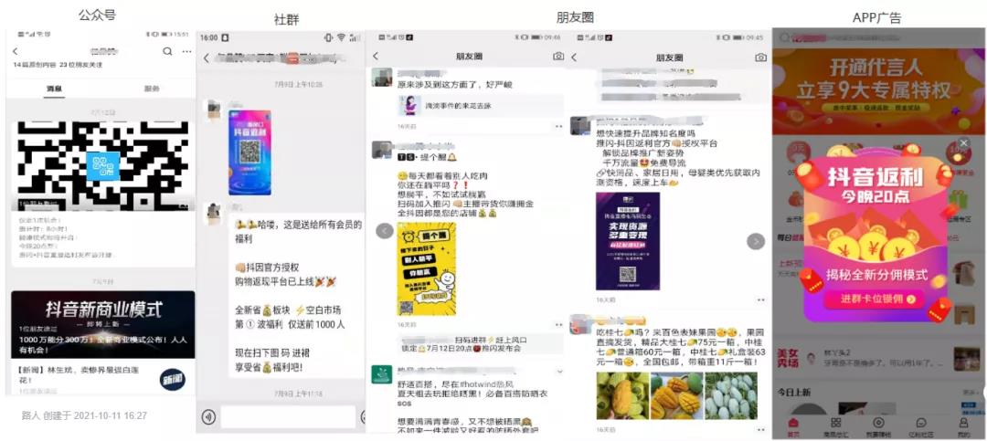 朋友圈、社群、公众号推文、APP广告