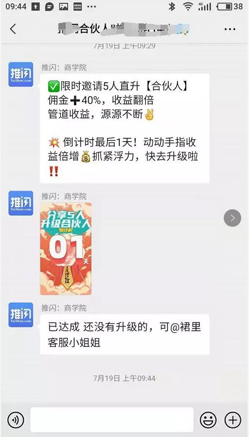 第二天修改群名为"邀请3人注册升级推闪合伙人",并不定时进行群推和进度通知。(再次促进裂变)