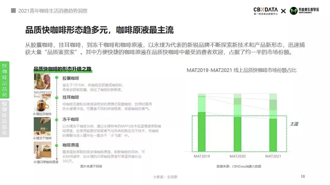 根据《2021青年咖啡生活消费趋势洞察》显示,方便快捷的咖啡原液在品质快咖啡中最受消费者欢迎,约占一半市场份额,这也说明永璞正确了判断消费者需求。