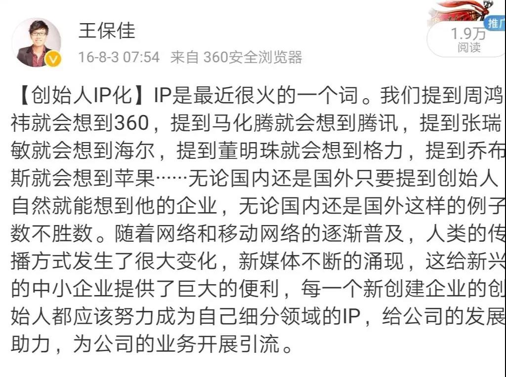 当你打开这篇文章,并阅读到了这个部分,说明你已经认同了打造个人品牌的重要性。早在2016年的时候,我就提出过打造企业IP的观点,当时只是针对的企业的创始人,叫创始人IP化,几年过去了对品牌和IP也有了更深的认知。微信公众平台的那句口号:"再小的个体,也有自己的品牌"。看到这句话以后我也刷新了以前的认知并不是只有企业家、明星才需要打造个人品牌。