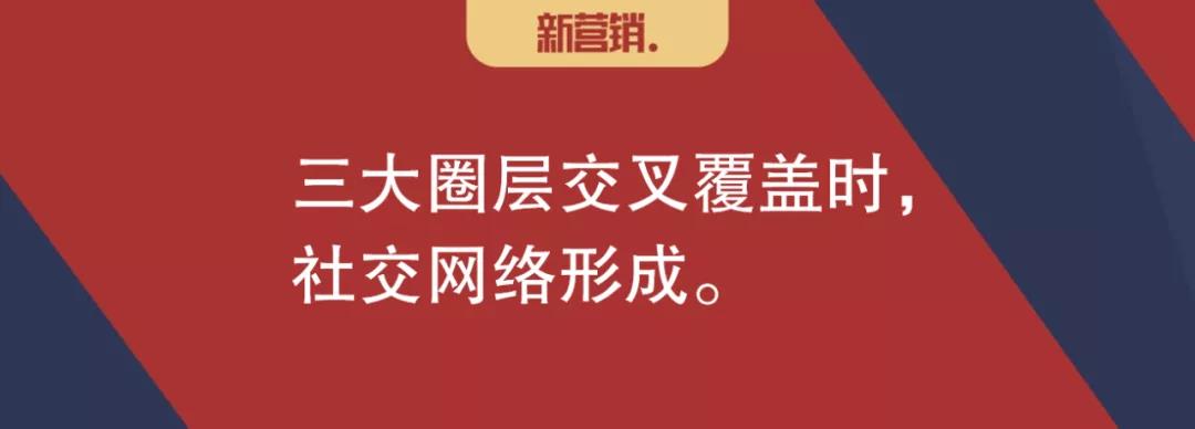 因此这三个圈层形成交叉覆盖时,社交网络就形成了。如果三者交叉重合度越高,意味着三大圈层全部被打通,产品通过圈层与社会资源融合成一种新的价值------社交货币。