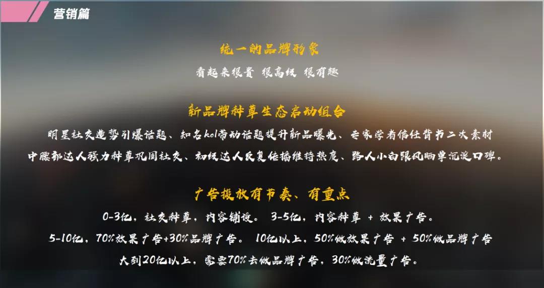 所以,在0-3个亿的阶段,效果广告不是重点,内容种草才是重点。那到3-5个亿的时候,就需要内容种草做基础,效果广告做放量了。