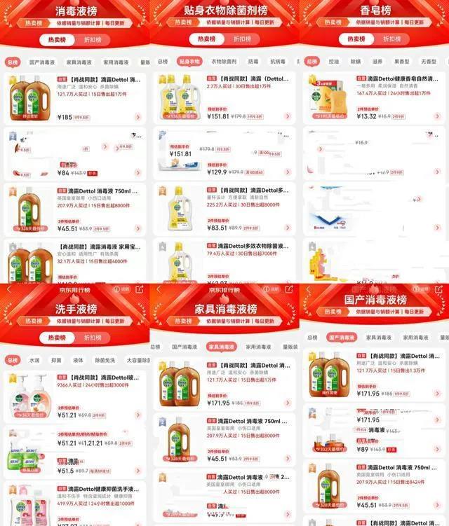 10月9日,滴露官宣肖战为品牌代言人之后,在某东购物平台迅速站上了国产消毒液排行榜、洗手液榜、贴身衣物除菌剂榜等多榜第一,战绩可谓亮眼。
