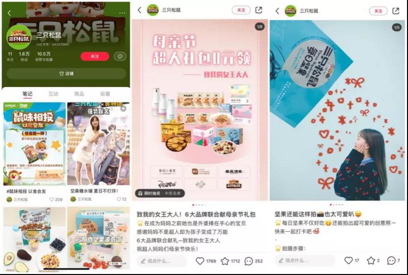 从三只松鼠在小红书推出的笔记看,他们不止是简单的展示产品,而是结合不同的策略做营销,来吸引关注和互动固粉。