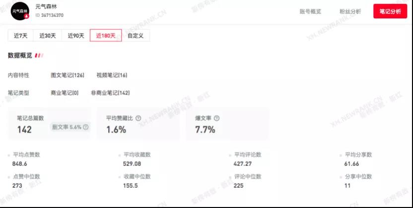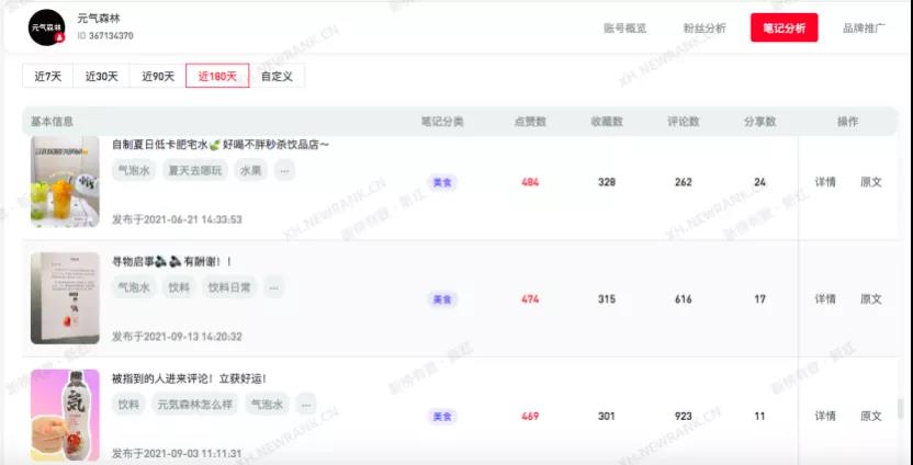 元气森林这个企业号的笔记质量比较高,平均每篇笔记的赞藏评数据比较乐观。亮点在于它的话题营销创意和标题文案,以及评论区的互动和引导。