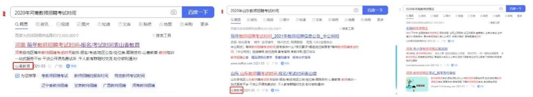 主要是因为针对河南和山东省进行了投放,投放关键字是河南/山东教师招聘。并没有对教师资格证关键词进行投放。