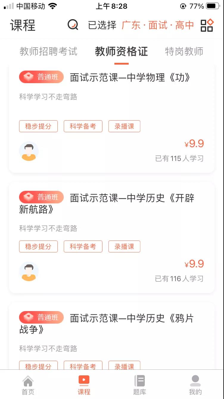 大体来说,山香的产品多而全,分为教师招聘考试、教师资格证和特岗教师三大类目,课程不仅包括常规的笔试、面试,还有针对某一个知识点的面试示范。