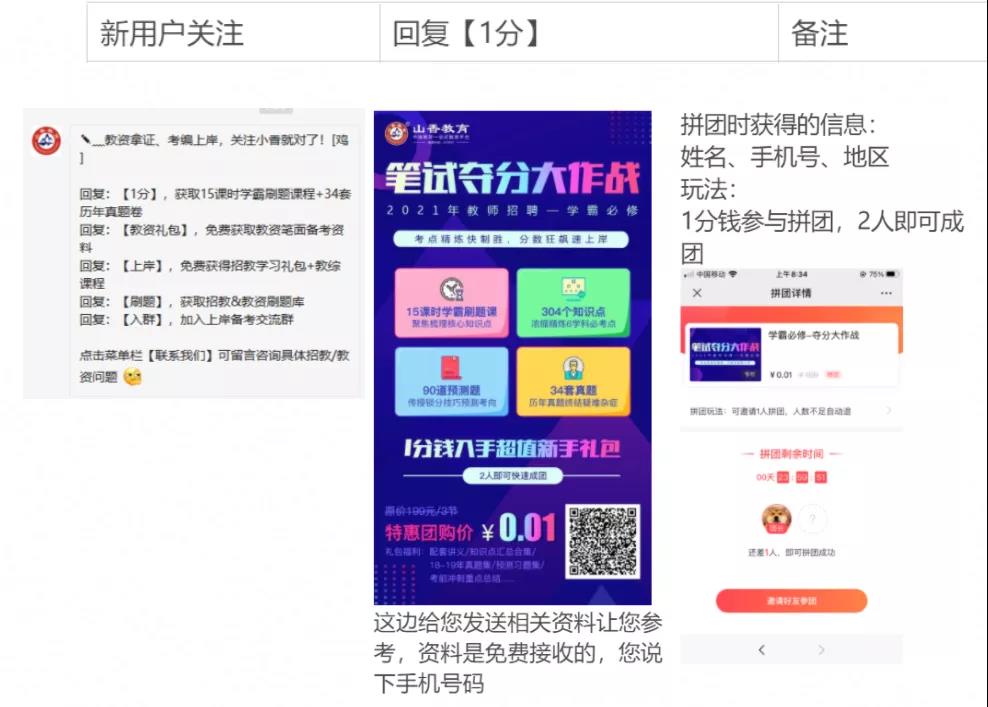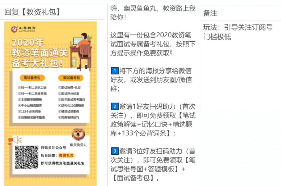 重点是说明如何完成任务拿到更多资料。由此也可以推出本场活动的目的就是抓住教师招聘冲刺黄金期,进行获客并完成转化。