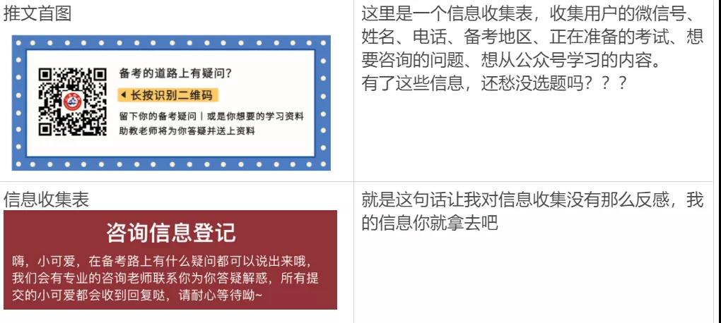 在初步体验的过程中,也能从各种获客细节感受到他们不愧是老牌机构,比如推文里的问卷话术,给我一种"虽然我知道你在收集信息,但我就是讨厌不起来"的感觉。