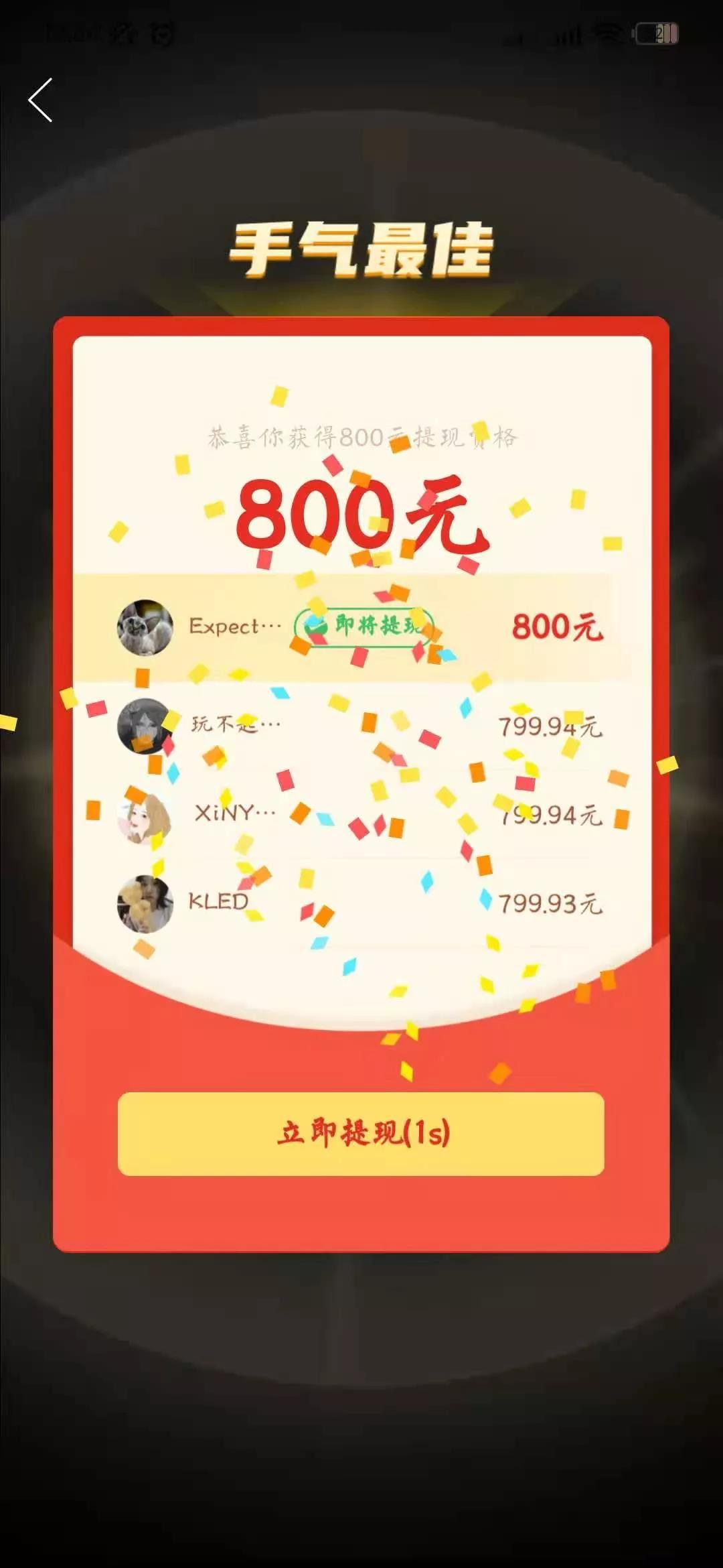 每个用户获得的红包金额都是接近提现金额的红包,例如800元可提现的话,用户获得的红包一般是799.98元或者799.97元这样