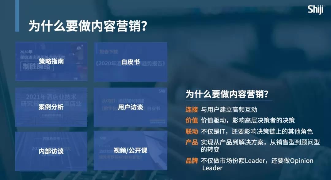 这里也引用一下致趣于总在To B CGO前段时间的上海大会上的一页演讲。这一页已经能够很好的概括,内容产出都包括哪些具体的形式了。